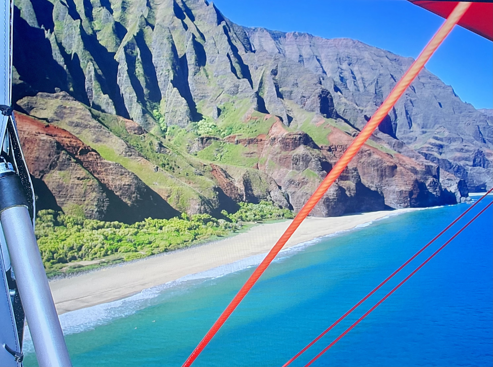 ↑ Flying along Kalalau Beach, NaPali Coast Kauai: